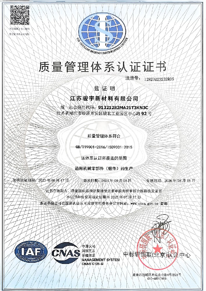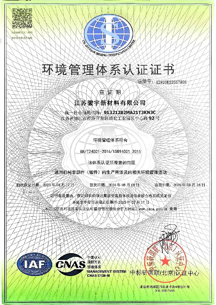 江蘇駿宇新材料公司位于江蘇省靖江市城北工業園區中心路92號,公司始建于1992年,在2020年6月新組建江蘇駿宇新材料有限公司。公司現擁有200余人的員工團隊,高級工程師9人,機械類12人及專業技術人才共36人。同時,現代化的生產設備和優質的生產工藝,也保障了我們產品的質量和服務。在企業成長過程中,我們與時俱進,依靠優質的管理模式和引進專業科技人才,保證了企業發展的“軟”實力。我們先后投入大量資金引進了先進的鍛造錘、鍛造液壓機、鍛造輾環機,多臺加工中心、數控車床、銑、刨、礳機床,以及覆蓋整個產品熱處理和表面處理工藝的設備,形成一系列完整的加工流程。     我們產品分為三個系列: 一、各種非標零部件的設計,鍛造,加工。二、···